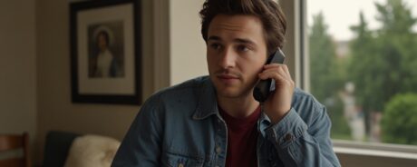 Tom is (calling) his grandmother on the phone now. She lives in another city.